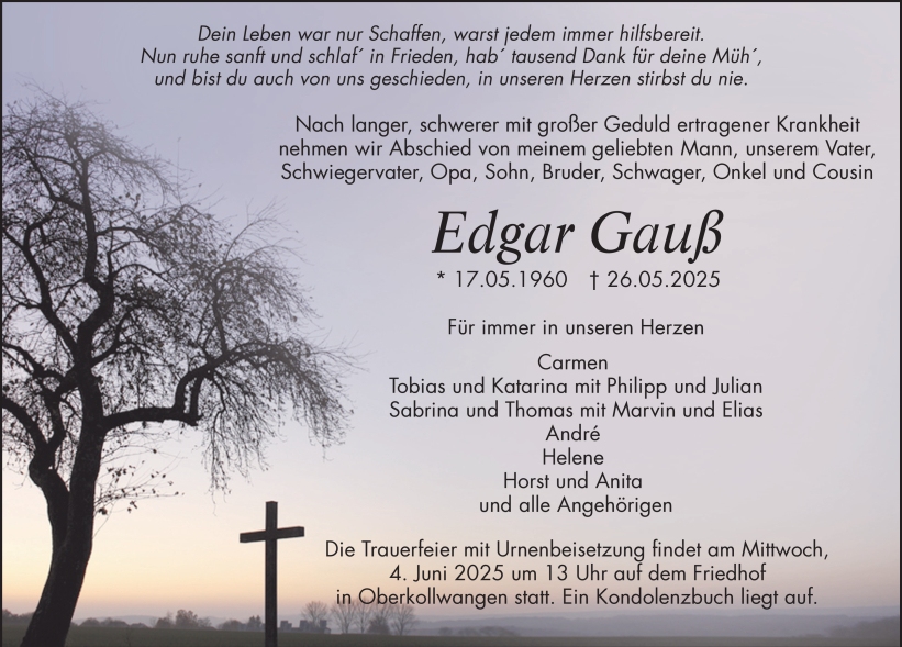 †26.05.2025, Ruhestätte: Friedhof Oberkollwangen