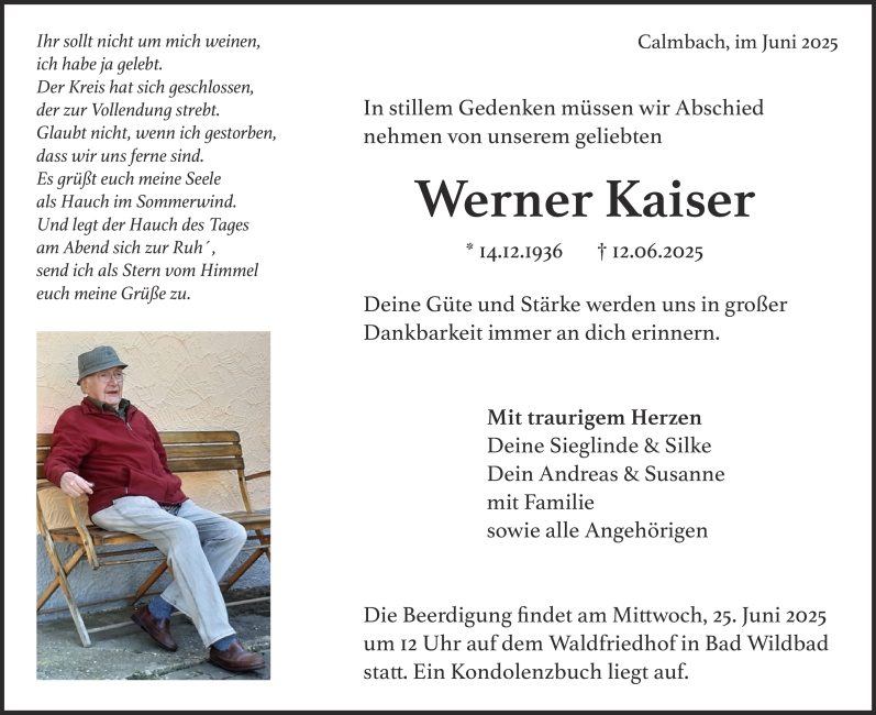 †12.06.2025, Ruhestätte: Waldfriedhof Bad Wildbad