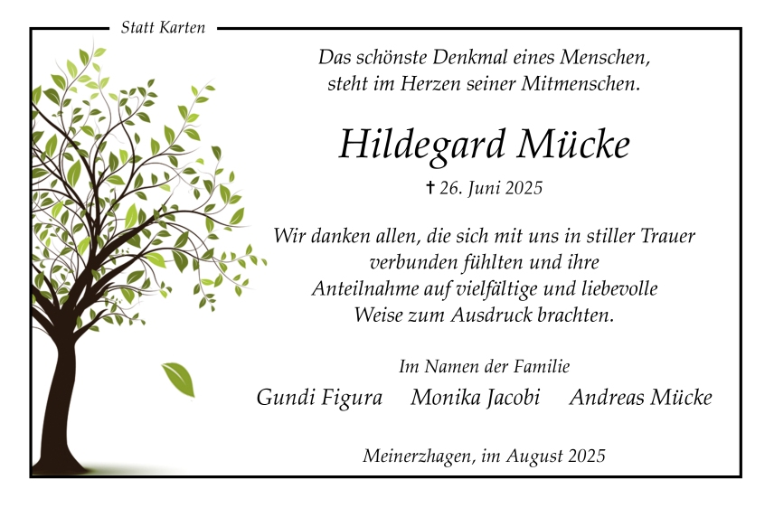 in diesen Tagen fühlen wir mit Ihnen und wünschen Ihnen von Herzen, dass Sie aus den glücklichen Erinnerungen Kraft schöpfen, um positiv in die Zukunft zu gehen. Diese Gedenkseite möge Ihnen dabei helfen, Ihre Trauer zu teilen und das Andenken gemeinsam wachzuhalten.