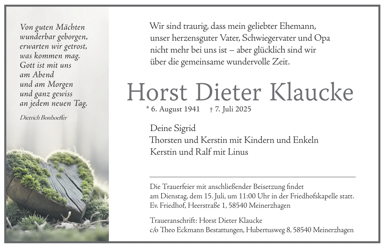 in diesen Tagen fühlen wir mit Ihnen und wünschen Ihnen von Herzen, dass Sie aus den glücklichen Erinnerungen Kraft schöpfen, um positiv in die Zukunft zu gehen. Diese Gedenkseite möge Ihnen dabei helfen, Ihre Trauer zu teilen und das Andenken gemeinsam wachzuhalten.