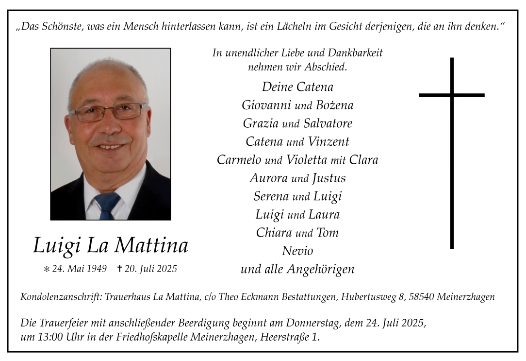 in diesen Tagen fühlen wir mit Ihnen und wünschen Ihnen von Herzen, dass Sie aus den glücklichen Erinnerungen Kraft schöpfen, um positiv in die Zukunft zu gehen. Diese Gedenkseite möge Ihnen dabei helfen, Ihre Trauer zu teilen und das Andenken gemeinsam wachzuhalten.