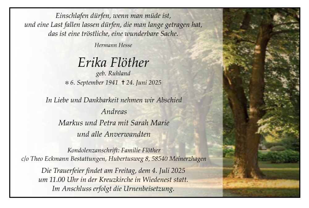 Theo Eckmann Bestattungen, am 24.07.2025