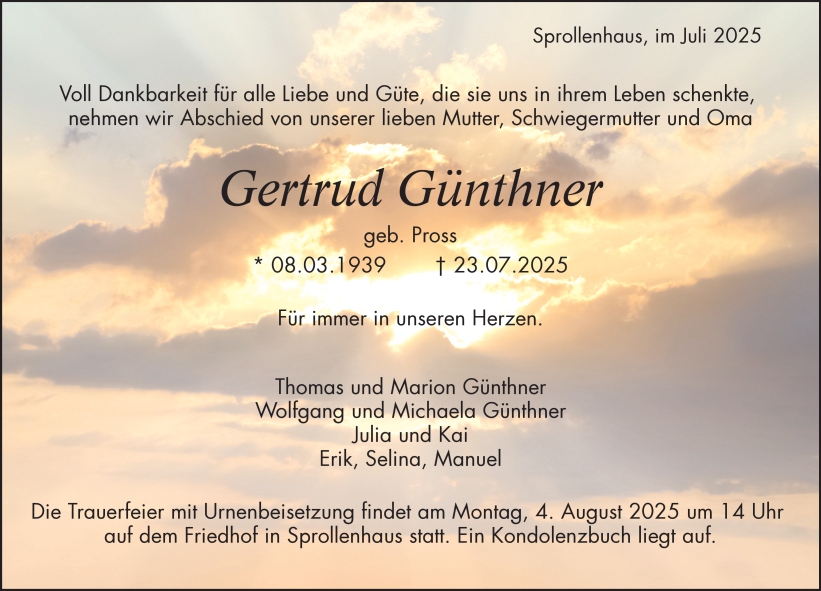†23.07.2025, Ruhestätte: Friedhof Sprollenhaus
