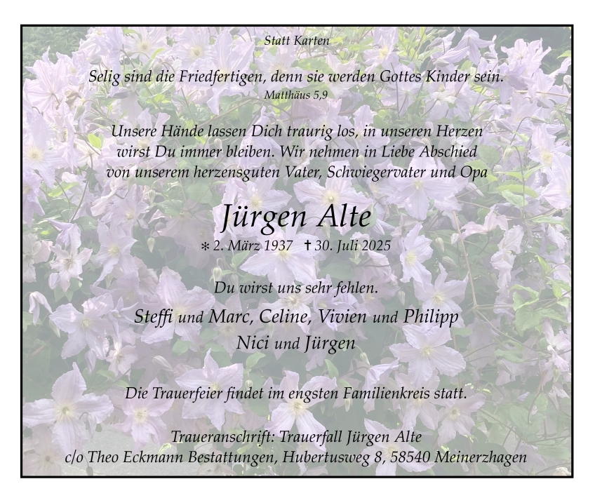 Liebe Familie Alte,