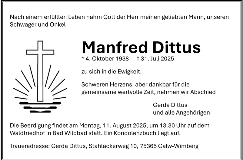†31.07.2025, Ruhestätte: Waldfriedhof Bad Wildbad