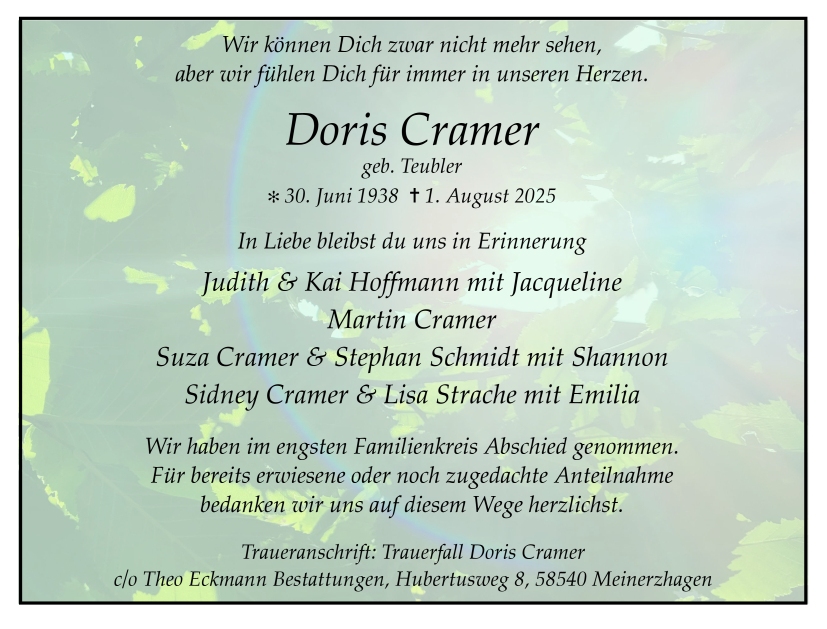 in diesen Tagen fühlen wir mit Ihnen und wünschen Ihnen von Herzen, dass Sie aus den glücklichen Erinnerungen Kraft schöpfen, um positiv in die Zukunft zu gehen. Diese Gedenkseite möge Ihnen dabei helfen, Ihre Trauer zu teilen und das Andenken gemeinsam wachzuhalten.