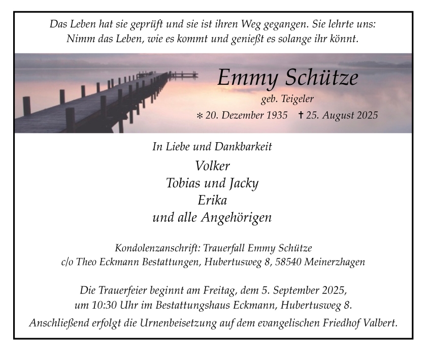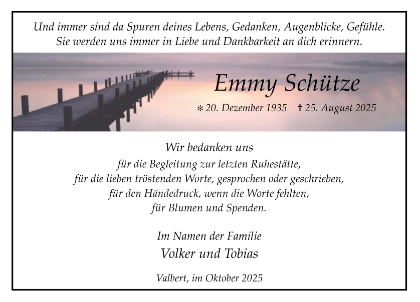 in diesen Tagen fühlen wir mit Ihnen und wünschen Ihnen von Herzen, dass Sie aus den glücklichen Erinnerungen Kraft schöpfen, um positiv in die Zukunft zu gehen. Diese Gedenkseite möge Ihnen dabei helfen, Ihre Trauer zu teilen und das Andenken gemeinsam wachzuhalten.