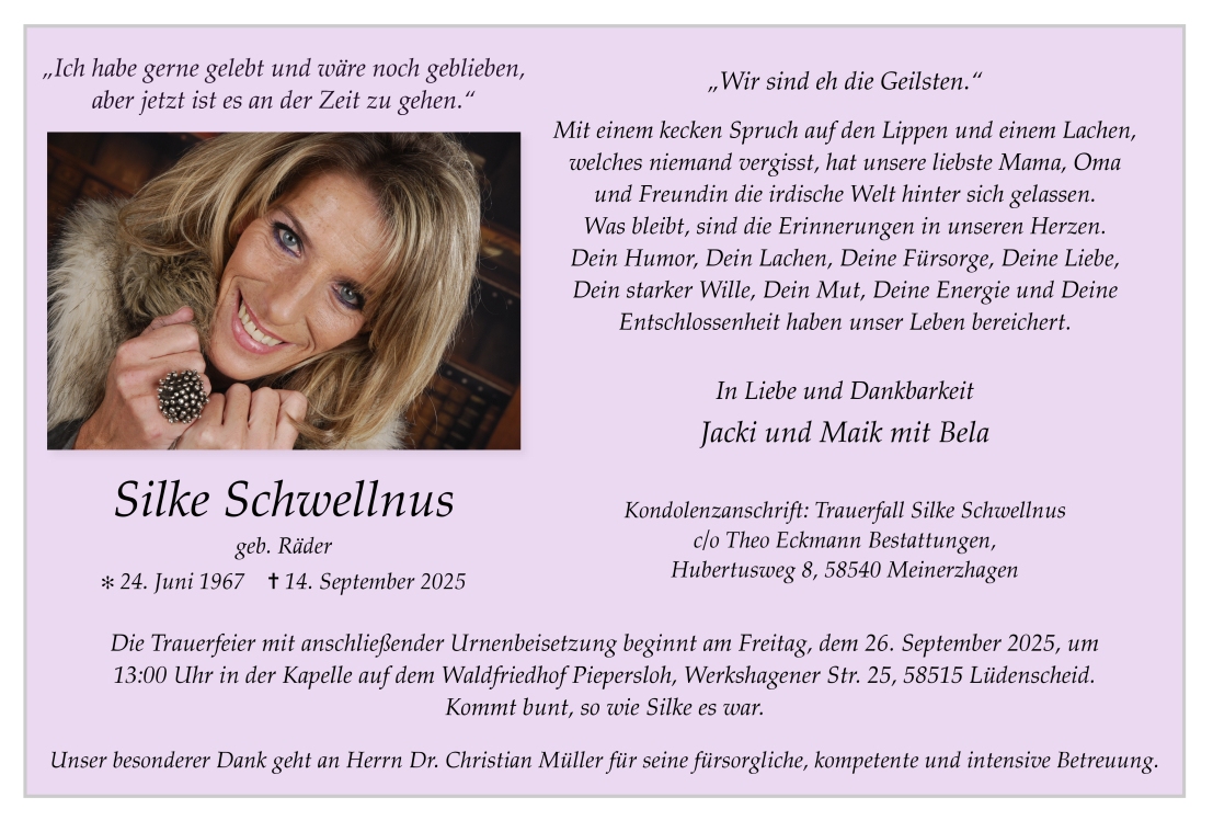in diesen Tagen fühlen wir mit Ihnen und wünschen Ihnen von Herzen, dass Sie aus den glücklichen Erinnerungen Kraft schöpfen, um positiv in die Zukunft zu gehen. Diese Gedenkseite möge Ihnen dabei helfen, Ihre Trauer zu teilen und das Andenken gemeinsam wachzuhalten.