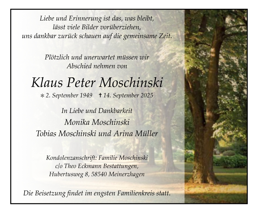 in diesen Tagen fühlen wir mit Ihnen und wünschen Ihnen von Herzen, dass Sie aus den glücklichen Erinnerungen Kraft schöpfen, um positiv in die Zukunft zu gehen. Diese Gedenkseite möge Ihnen dabei helfen, Ihre Trauer zu teilen und das Andenken gemeinsam wachzuhalten.