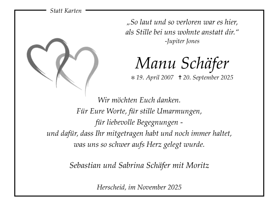 in diesen Tagen fühlen wir mit Ihnen und wünschen Ihnen von Herzen, dass Sie aus den glücklichen Erinnerungen Kraft schöpfen, um positiv in die Zukunft zu gehen. Diese Gedenkseite möge Ihnen dabei helfen, Ihre Trauer zu teilen und das Andenken gemeinsam wachzuhalten.