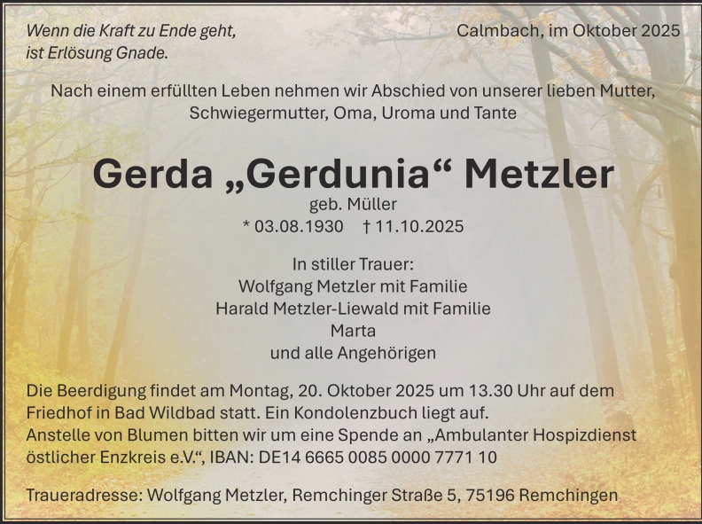 †11.10.2025, Ruhestätte: Waldfriedhof Bad Wildbad