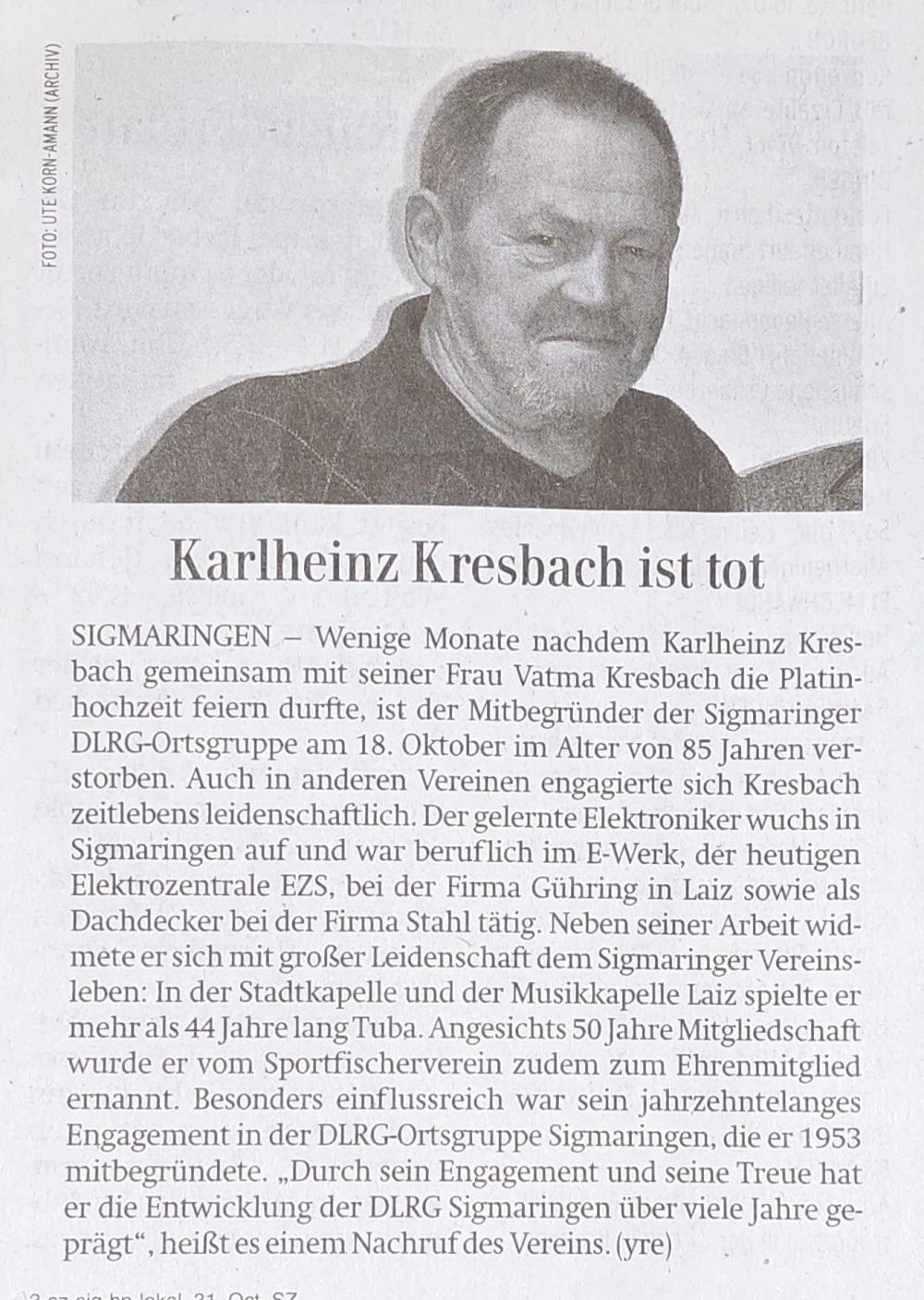 Trauerfeier am Freitag, 24. Oktober 2025 um 10.00 Uhr in der Aussegnungshalle auf dem Hedinger Friedhof in Sigmaringen mit anschließender Erdbestattung.