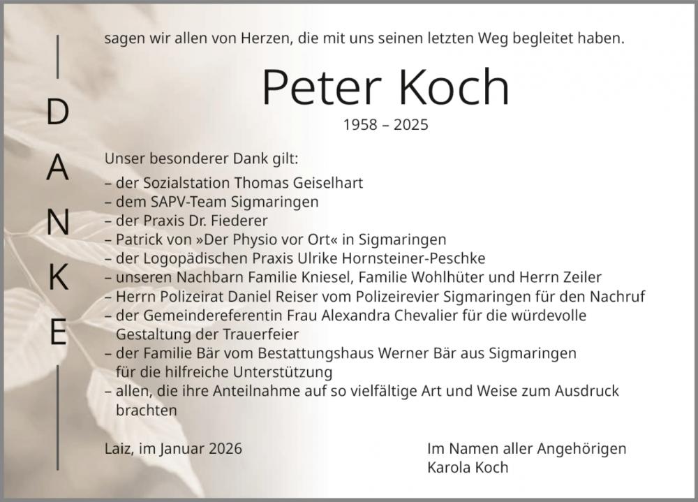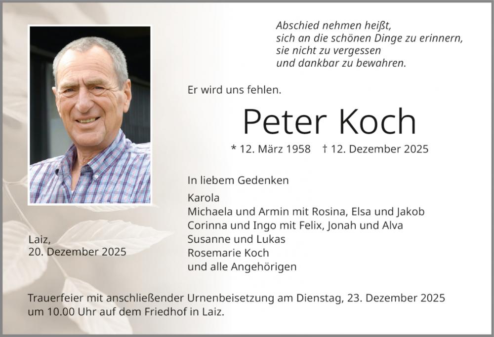 Trauerfeier mit anschließender Urnenbeisetzung am Dienstag, 23. Dezember 2025 um 10.00 Uhr auf dem Friedhof in Laiz.