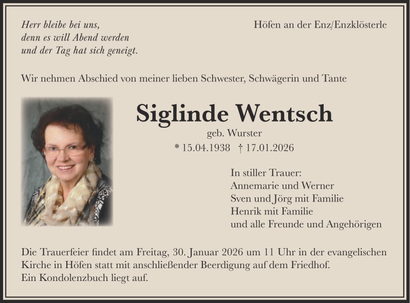 †17.01.2026, Ruhestätte: Friedhof Höfen an der Enz