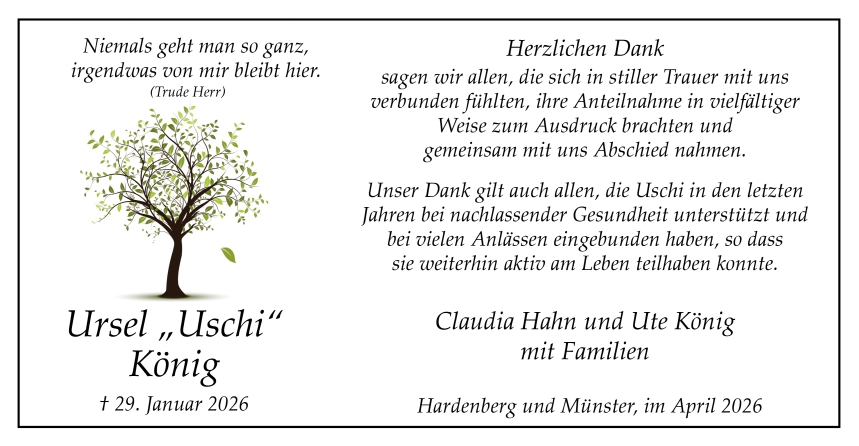 in diesen Tagen fühlen wir mit Ihnen und wünschen Ihnen von Herzen, dass Sie aus den glücklichen Erinnerungen Kraft schöpfen, um positiv in die Zukunft zu gehen. Diese Gedenkseite möge Ihnen dabei helfen, Ihre Trauer zu teilen und das Andenken gemeinsam wachzuhalten.