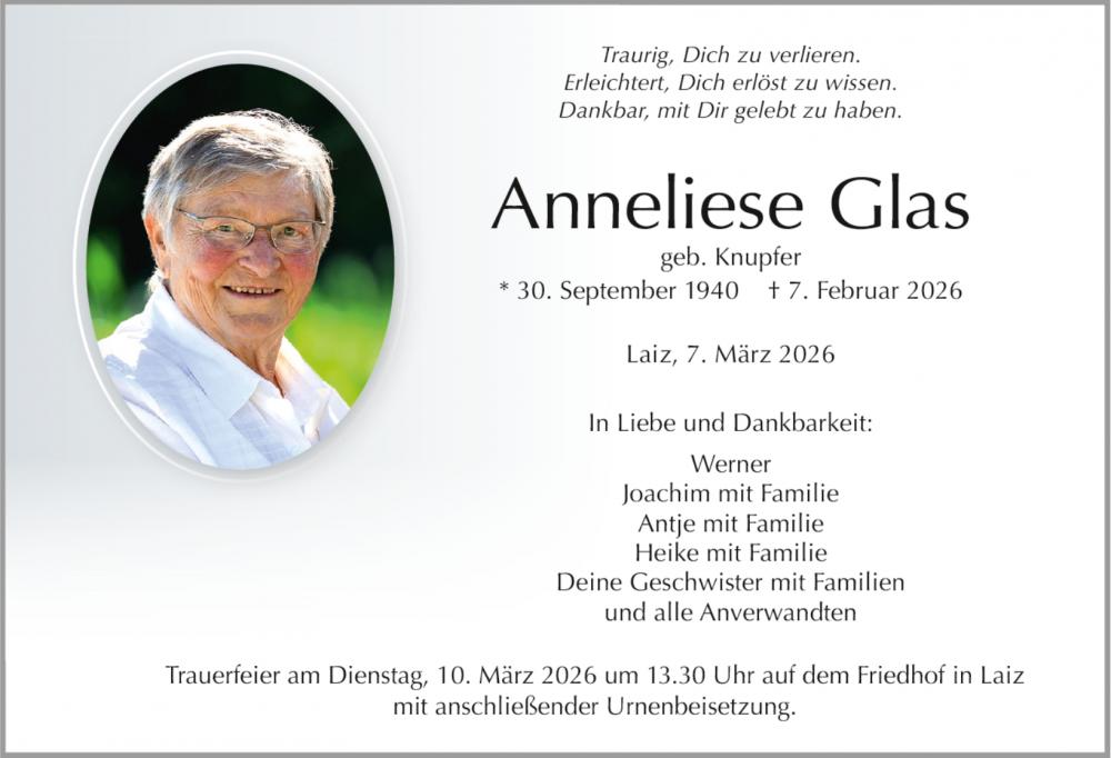 Trauerfeier am Dienstag, 10. März 2026 um 13.03 Uhr auf dem Friedhof in Laiz mit anschließender Urnenbeisetzung.