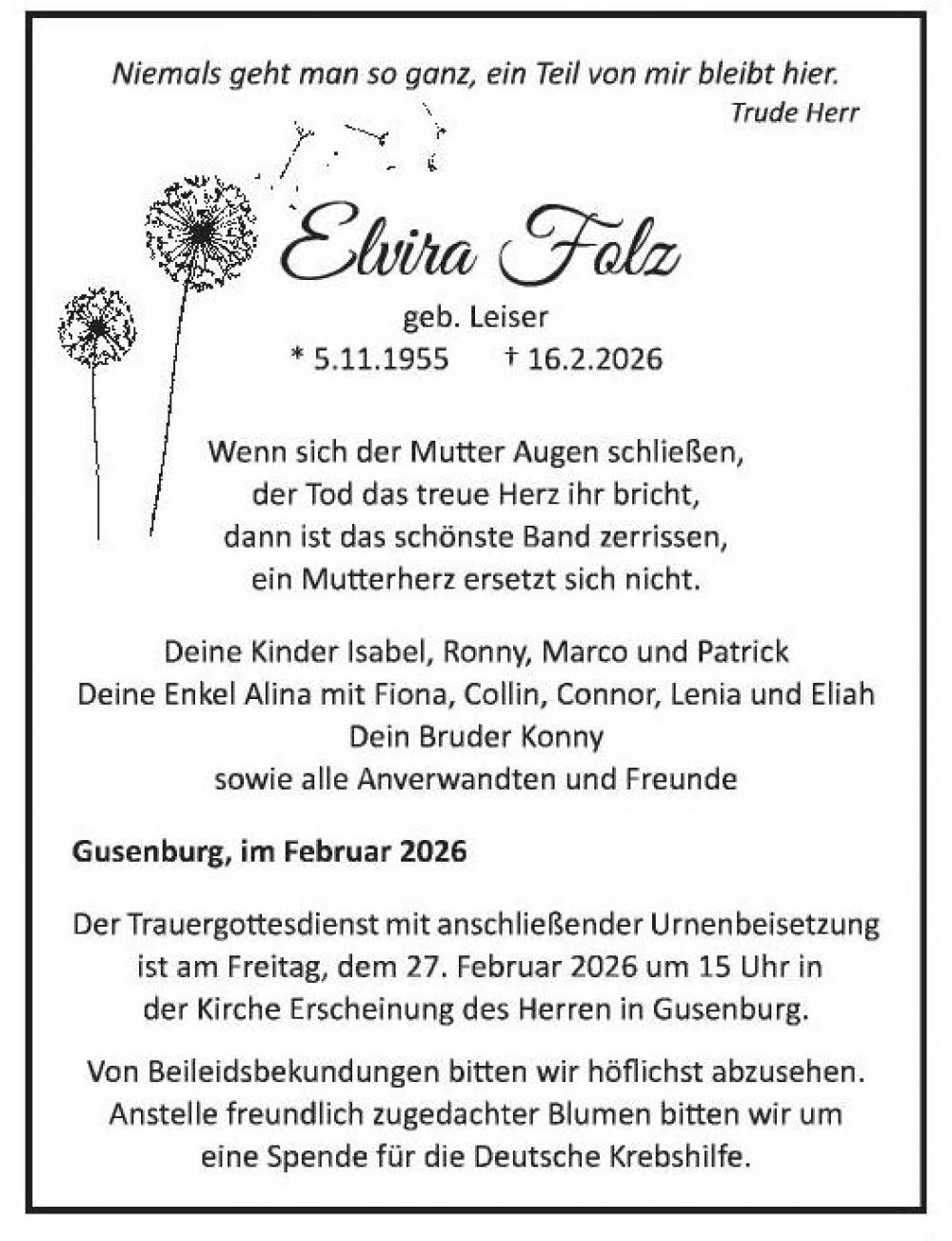 Noch keine Kondolenzen verfügbar