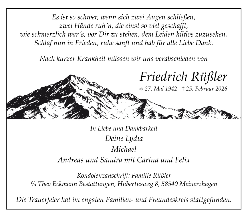 in diesen Tagen fühlen wir mit Ihnen und wünschen Ihnen von Herzen, dass Sie aus den glücklichen Erinnerungen Kraft schöpfen, um positiv in die Zukunft zu gehen. Diese Gedenkseite möge Ihnen dabei helfen, Ihre Trauer zu teilen und das Andenken gemeinsam wachzuhalten.