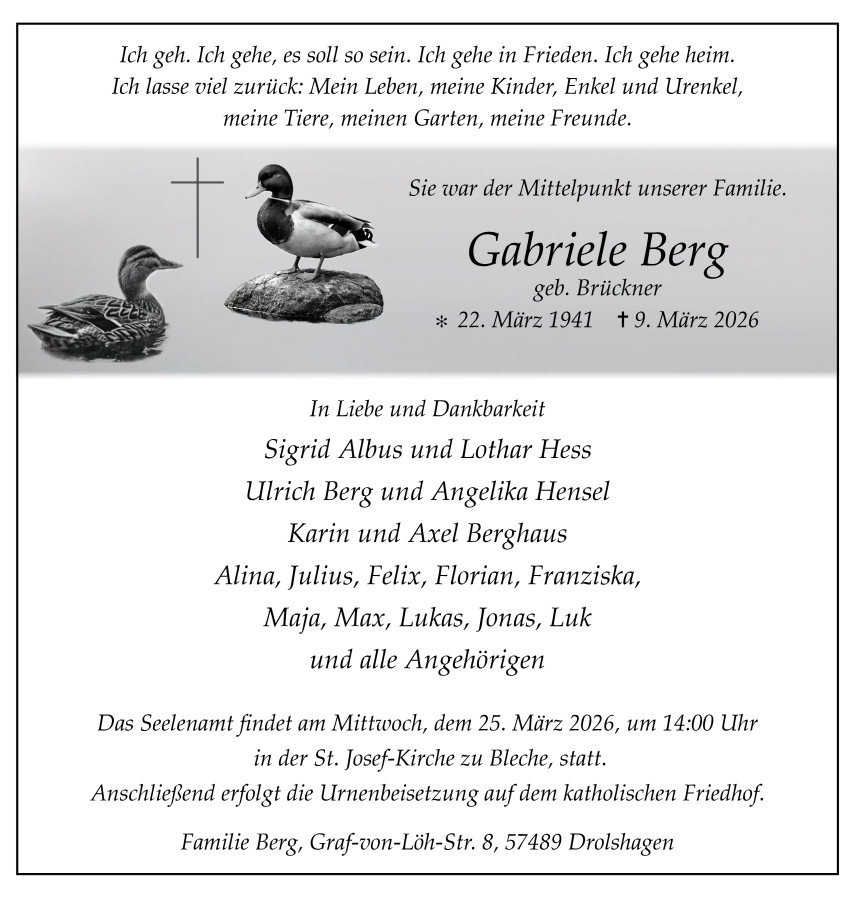 †09.03.2026, Ruhestätte:
