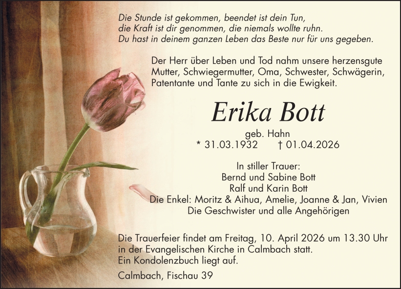 †01.04.2026, Ruhestätte: Friedhof Calmbach