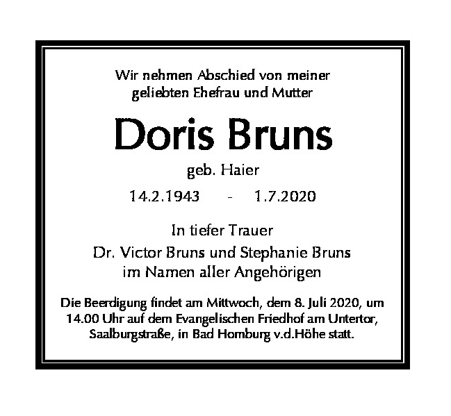 †01.07.2020, Ruhestätte: Ev. Friedhof, Bad Homburg