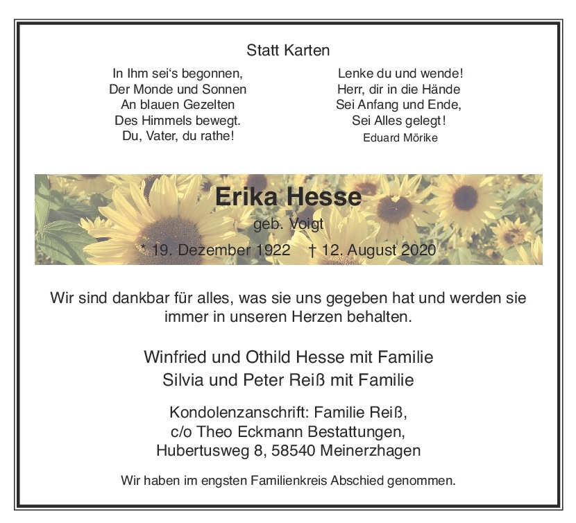 Theo Eckmann Bestattungen und Friedhofsgärtnerei, am 20.08.2020