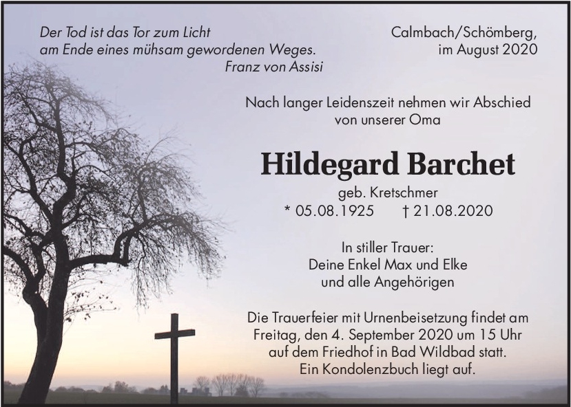 †21.08.2020, Ruhestätte: Waldfriedhof Bad Wildbad