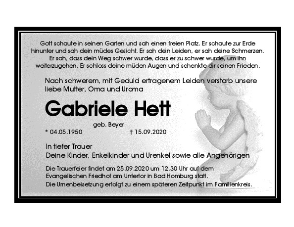 †15.09.2020, Ruhestätte: Ev. Friedhof, Bad Homburg