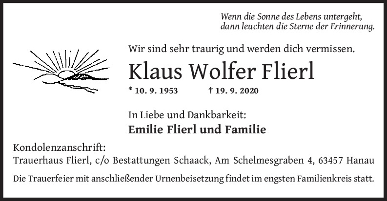Ihnen Frau Flierl gilt unsere aufrichtige Anteilnahme.