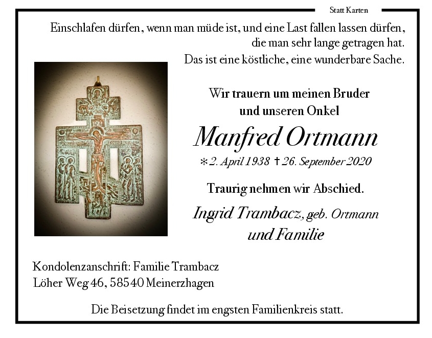 wir wünschen Ihnen von Herzen viel Kraft, dass Sie Menschen um sich haben, die Ihnen in dieser schweren Zeit beistehen und Halt geben. Zusätzlich können Sie auf dieser Gedenkseite Erinnerungen teilen und so das Andenken gemeinsam wachhalten.