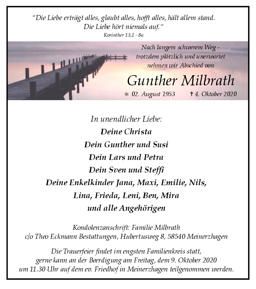 in dieser Zeit des Schmerzes wünschen wir Ihnen Kraft, den Verlust im Kreise Ihrer Liebsten zu verarbeiten. Als Zeichen unserer Anteilnahme und des Gedenkens entzünden wir dieses erste Licht. Möge diese Gedenkseite Ihnen helfen, Erinnerungen zu teilen und so das Andenken gemeinsam wachzuhalten.