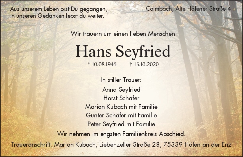 †13.10.2020, Ruhestätte: Waldfriedhof Bad Wildbad