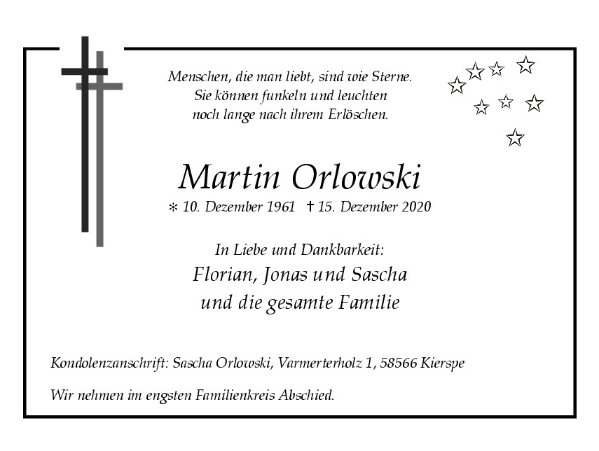 wir wünschen Ihnen von Herzen viel Kraft, dass Sie Menschen um sich haben, die Ihnen in dieser schweren Zeit beistehen und Halt geben. Zusätzlich können Sie auf dieser Gedenkseite Erinnerungen teilen und so das Andenken gemeinsam wachhalten.