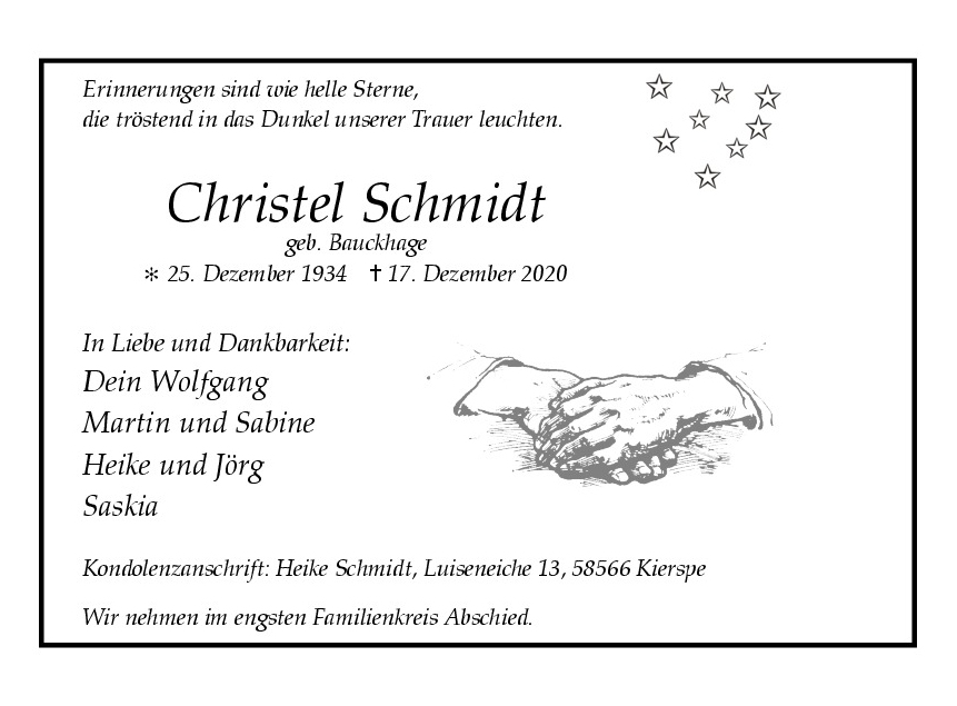 in diesen Tagen fühlen wir mit Ihnen und wünschen Ihnen von Herzen, dass Sie aus den glücklichen Erinnerungen Kraft schöpfen, um positiv in die Zukunft zu gehen. Diese Gedenkseite möge Ihnen dabei helfen, Ihre Trauer zu teilen und das Andenken gemeinsam wachzuhalten.