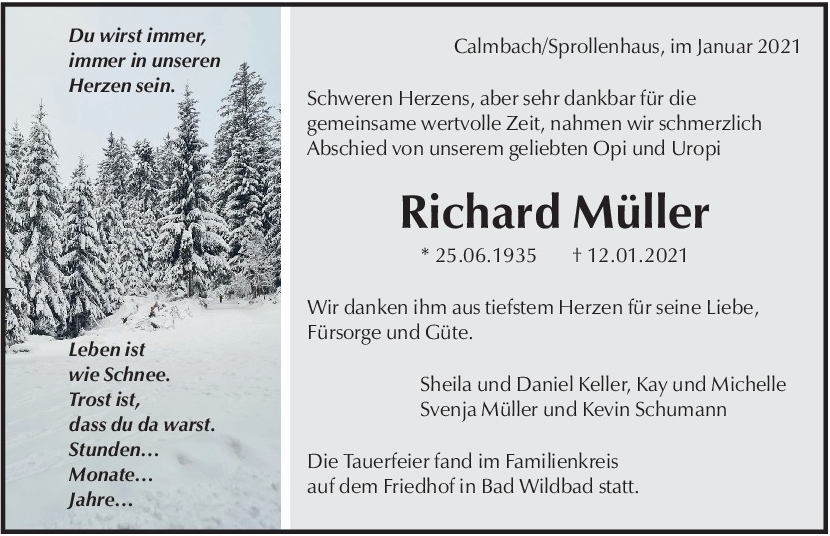 †12.01.2021, Ruhestätte: Waldfriedhof Bad Wildbad