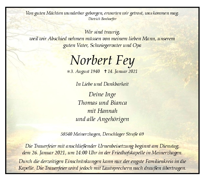 in diesen Tagen fühlen wir mit Ihnen und wünschen Ihnen von Herzen, dass Sie aus den glücklichen Erinnerungen Kraft schöpfen, um positiv in die Zukunft zu gehen. Diese Gedenkseite möge Ihnen dabei helfen, Ihre Trauer zu teilen und das Andenken gemeinsam wachzuhalten.