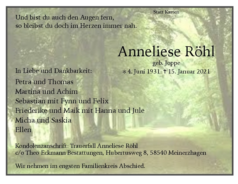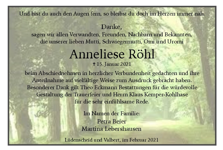 in diesen Tagen fühlen wir mit Ihnen und wünschen Ihnen von Herzen, dass Sie aus den glücklichen Erinnerungen Kraft schöpfen, um positiv in die Zukunft zu gehen. Diese Gedenkseite möge Ihnen dabei helfen, Ihre Trauer zu teilen und das Andenken gemeinsam wachzuhalten.