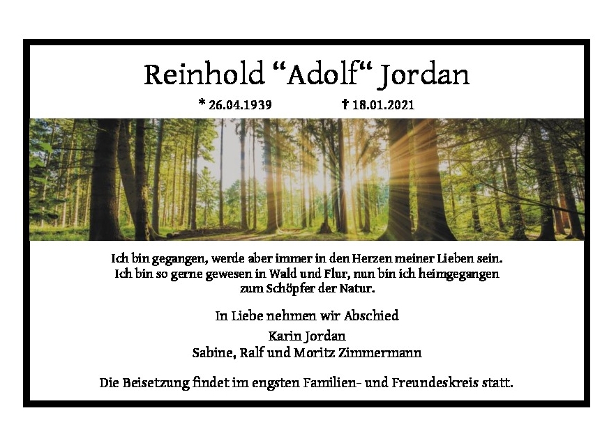 Lieber Reinhold in Großer Trauer musste ich feststellen das leider einfach von uns gegangen bist, deine Gespräche zum Nachmittags Kaffee werden uns fehlen, wir werden dich in Erinnerung behalten du warst ein feiner Mensch.