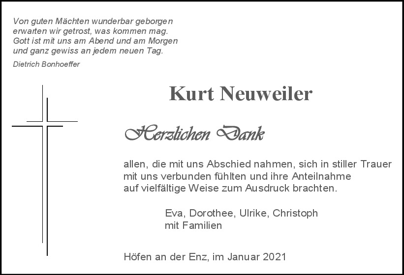 †16.01.2021, Ruhestätte: Friedhof Höfen an der Enz