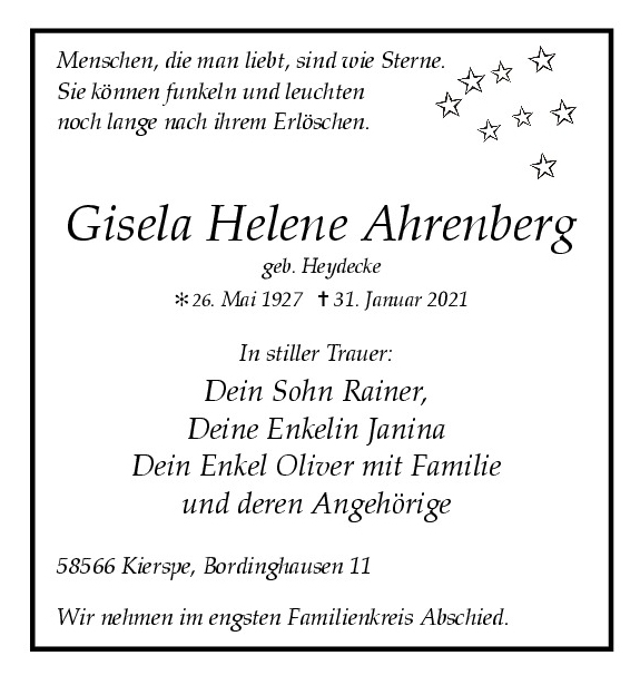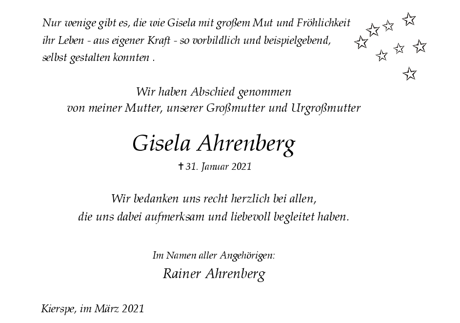 in diesen Tagen fühlen wir mit Ihnen und wünschen Ihnen von Herzen, dass Sie aus den glücklichen Erinnerungen Kraft schöpfen, um positiv in die Zukunft zu gehen. Diese Gedenkseite möge Ihnen dabei helfen, Ihre Trauer zu teilen und das Andenken gemeinsam wachzuhalten.