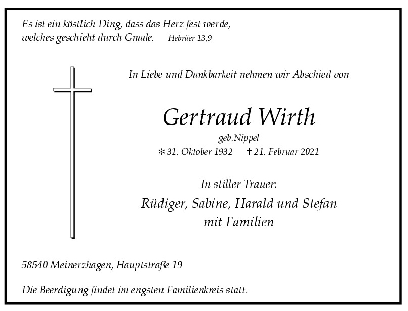 in diesen Tagen fühlen wir mit Ihnen und wünschen Ihnen von Herzen, dass Sie aus den glücklichen Erinnerungen Kraft schöpfen, um positiv in die Zukunft zu gehen. Diese Gedenkseite möge Ihnen dabei helfen, Ihre Trauer zu teilen und das Andenken gemeinsam wachzuhalten.