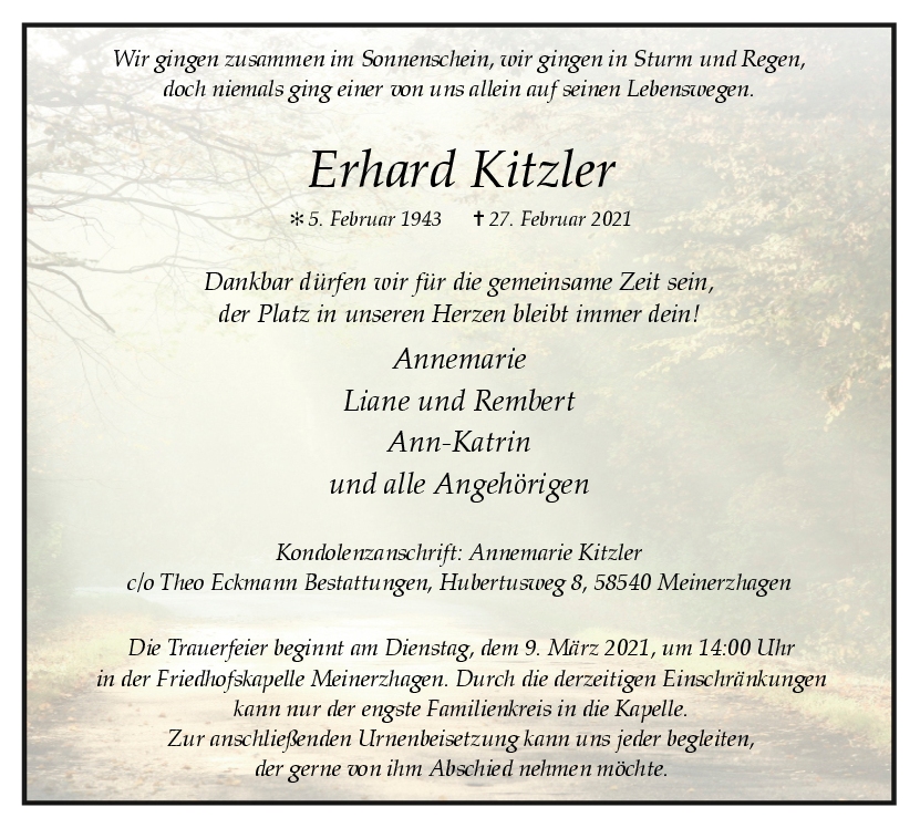 in diesen Tagen fühlen wir mit Ihnen und wünschen Ihnen von Herzen, dass Sie aus den glücklichen Erinnerungen Kraft schöpfen, um positiv in die Zukunft zu gehen. Diese Gedenkseite möge Ihnen dabei helfen, Ihre Trauer zu teilen und das Andenken gemeinsam wachzuhalten.