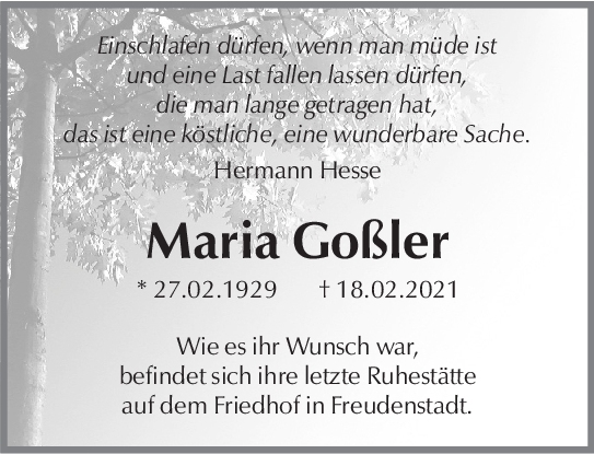 †18.02.2021, Ruhestätte: Friedhof Freudenstadt