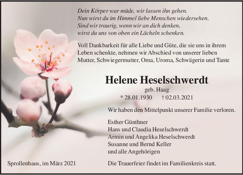 †02.03.2021, Ruhestätte: Friedhof Sprollenhaus
