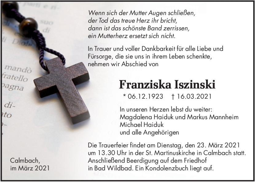 †16.03.2021, Ruhestätte: Waldfriedhof Bad Wildbad