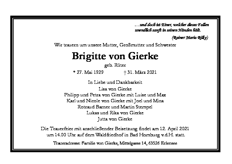 †31.03.2021, Ruhestätte: Waldfriedhof, Bad Homburg