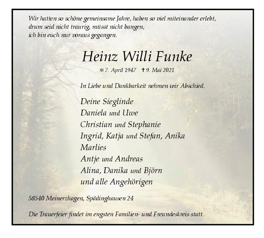 in diesen Tagen fühlen wir mit Ihnen und wünschen Ihnen von Herzen, dass Sie aus den glücklichen Erinnerungen Kraft schöpfen, um positiv in die Zukunft zu gehen. Diese Gedenkseite möge Ihnen dabei helfen, Ihre Trauer zu teilen und das Andenken gemeinsam wachzuhalten.