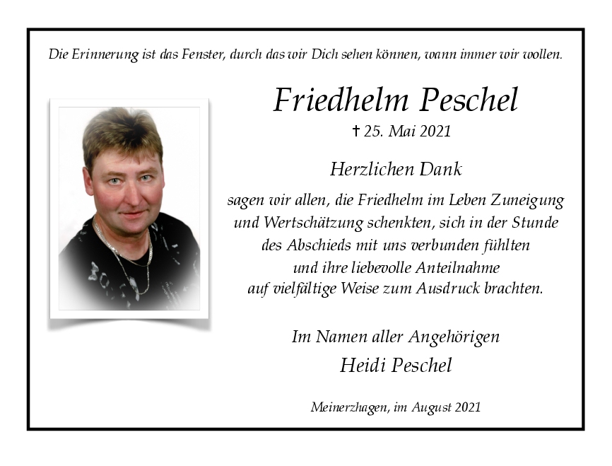 Liebe Familie Peschel,