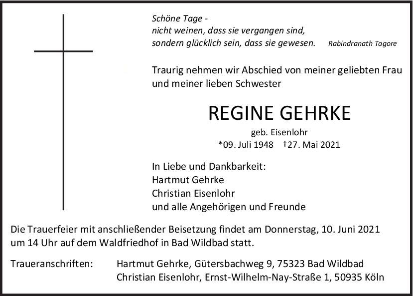 †27.05.2021, Ruhestätte: Waldfriedhof Bad Wildbad