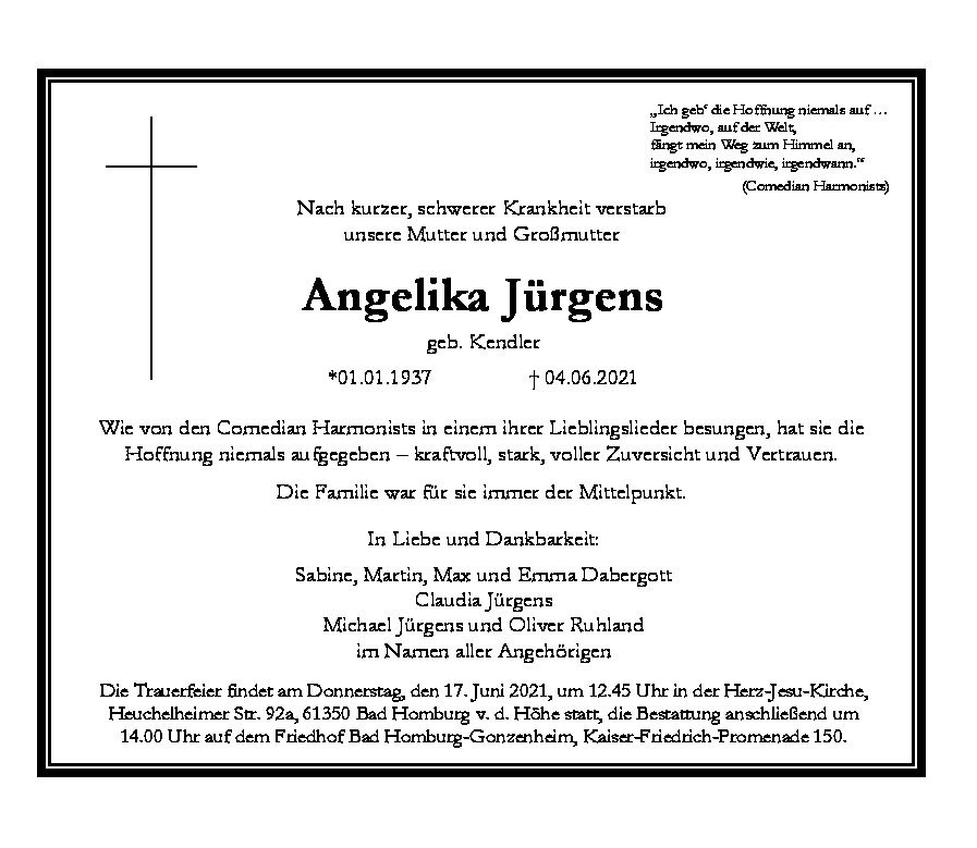 †04.06.2021, Ruhestätte: Gonzenheimer Friedhof, Bad Homburg